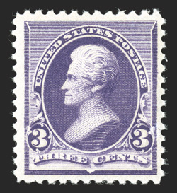 582 nh 221 221, 3c Purple, nicely centered and margined, lovely rich color on fresh paper, o.g., n.h., choice very fine 1988 PF certificate.#221, 3c Purple, nicely centered and margined, lovely rich color on fresh paper, o.g., n.h., choice very fine; 1988 PF certificate. (Image) $230.00