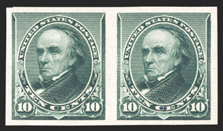 certificate.#226a, 10c Green imperforate, horizontal pair, large balanced margins around, deep intense color and impression, o.g., trivial h.r., extremely fine; 1990 PF certificate. (Image) $325.00