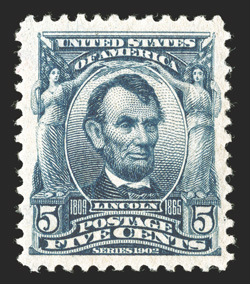 extremely fine gem 1987 PF certificate.#304, 5c Blue, a highly select mint single, marvelously well centered within large margins, lovely rich color and a crisp impression on fresh paper, unblemished o.g., n.h., an extremely fine gem; 1987 PF certificate. (Image) $150.00