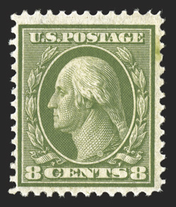 certificate.#337, 8c Olive green, exceedingly well centered and margined, sumptuously rich color and a strong impression, flawless o.g., n.h., extremely fine; 1989 PF certificate. (Image) $105.00