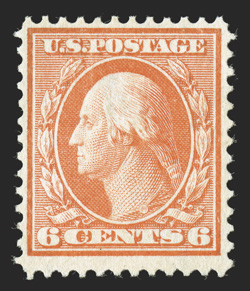 certificate.#336, 6c Red orange, outstanding centering amid large balanced margins, bright color, o.g., n.h. (tiny gum skip), extremely fine and choice; clear 1990 PF certificate. (Image) $150.00