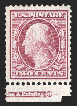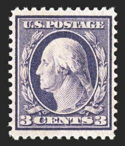 PF certificate.#325, 3c Louisiana Purchase, left sheet-margin single, exceptionally well centered, deep color and a razor-sharp impression on fresh white paper, o.g., n.h., extremely fine; 1989 PF certificate. (Image) $200.00