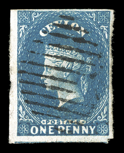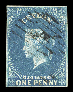 seen. A very fine example of one of the major British Colonial classic4d. dull rose, unused with large part original gum, small to good margins on three sides, outer frameline touched at right, lovely strong rich color, one of the finest we have seen. A very fine example of one of the major British Colonial classics. R.P.S. (1952 and 2008) and A. Diena (1953) Certificates. Sc. 5; S.G. 4, £70,000. (Image) Est. $75,000-100,000