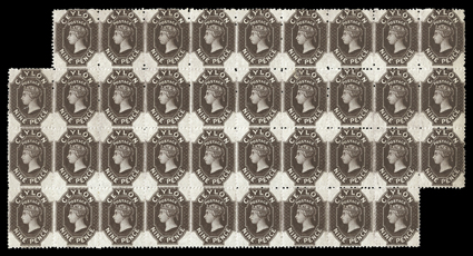 A wonderful exhibition multiple. Sc. 55a S.G. 69b.9d. blackish brown, a magnificent block of thirty-eight (10x4 less the upper left and lower right stamps), lovely fresh color and unused with large part or full original gum. A wonderful exhibition multiple. Sc. 55a; S.G. 69b. (Image) Est. $5,000-7,500