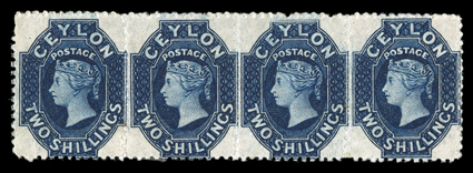 S.G. 72b.2/- deep blue horizontal strip of four, fresh vibrant color and with part to large part original gum; horizontal crease which may be natural. R.P.S. Certificate (2007). Sc. 58a; S.G. 72b. (Image) Est. $300-400