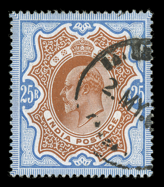 3083 O SG 147 S.G. 147, 1909 25R Brownish orange and blue, select postally used single, rich luxuriant colors on fresh white paper, very well centered, neat c.d.s. cancel, choice very