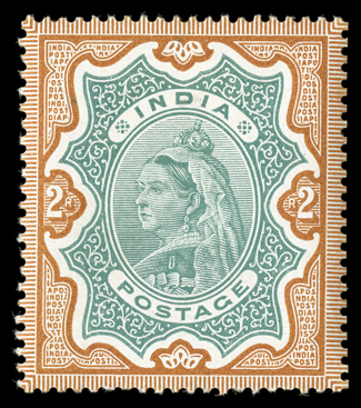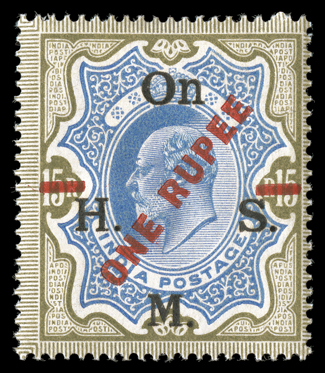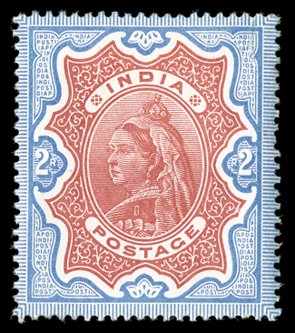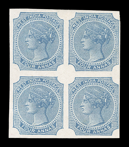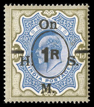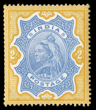 varieties, impressive multiples, plating studies and even a few importanBritish India impressive collection offered intact, a highly comprehensive and valuable specialized collection with essays, proofs, specimens, mint and used singles, errors, varieties, impressive multiples, plating studies and even a few important covers, all neatly mounted and written-up on quadrille pages in four albums, the first volume is all 1854-55 Lithographed issue material, starting with used examples of the ½a white (faults) and ½a blue (repaired) "Scinde Dawk" issues, then a wonderful showing of ½a to 8a essays and proof material which fills about half the volume and includes ½a Lion & Palm types, 1a Queen's Head with Gothic crown including a complete sheet of three in olive green, 8a essays, many ½a essays with single impressions, different colors and multiples, with a complete sheet of the 1889 printing, followed by the ½a "Nine Arches" unissued stamp (S.G. #1), ½a proofs, issued stamps including an unused full top right corner margin die I block of sixteen (4x4), die II full right sheet-margin unused block of 16 (2x8), 1a essays including single impressions, single and block of six of 1854 impression in black, 1855 impression complete strip of eight as well as later impressions, useful issued stamps including multiples, there are many of various the 4a impressions including inverted centers in singles, pairs and blocks, nice pleasantly duplicated issued stamps with all five printings well represented and mostly cut square, including a Second Printing pair on cover, and ending with 2a essays and issued stamps, the second volume spans the De La Rue issues to early George V with used singles apparently complete and featuring a lovely 1855 4a Black on blue glazed paper bisect usage on 1859 folded letter from Singapore to Penang (S.G. #35b) with BPA certificate, four used 1866 fiscal issues, 1874 1R sunken die proof, 1880 West India essays in five colors in blocks, 1883 1a bisect usage on 1896 cover with two singles, 1882 1a6p die proof, plus mint ½a and 2a values with double impression, 1894 2R color trials in eight different color combinations, 1898 ¼a surcharge on double impression stamp, five different 1925 official essay surcharges on KEVII stamps and three proofs of the issued surcharges as well as five different essay and two proof surcharges for the George V officials, the third volume continues from George V to Independence and includes scarce booklets, 1921 "Nine/Pies" essay surcharges including two blocks of four as well as the "Nine/Nine" and "Pies/Pies" errors in strips, and inverted and double surcharges in pairs, the ¼a surcharges includes two with surcharge omitted in block of four, then there is a set of the 1925 Delhi specimens and 1931 Inauguration on 1935 Jubilee varieties, the last volume is all officials and includes 1866 unwatermarked ½a, 1a and 8a values used and 8p with no stop after "Service" at the center of a mint strip of three, then there is a nice showing of the 1866 fiscal issues including S.G. #O16 used and a complete mint example from the 1884 government reprint with BPA certificate, as well as mint and used examples of #O19, the "On H.M.S." overprints include some misplaced overprints and 1925 double surcharges as well as the 1926 "One Anna" on 1a error, while there are some faults here and there the overall quality is much nicer than typically found, with the great majority being fine-very fine or better, a very substantial collection which should not be missed. (imagea) (imageb) (imagec) (imaged) (imagee) (imagef) (imageg) (imageh) (imagei) (imagej) (imagek) (imagel) (imagem) (imagen) (imageo) (imagep) (Image) Est. $40,000-50,000