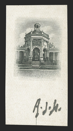 1242 E SG 86E S.G. 86E, 1920 2- Frame only die essay and vignette only die essay in black on glazed proof paper, both initialed A.J.H. at bottom, frame essay toned and with diagonal crease