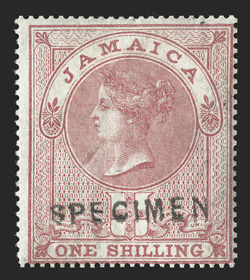 1337 S SG F7s-9s S.G. 7s-9s, 1858 1-, 5- and 10- Victoria, handstamped SPECIMEN cplt., good colors on fresh paper, o.g., l.h., fine and scarce.S.G. #7s-9s, 1858 1/-, 5/- and 10/- Victoria, handstamped "SPECIMEN" cplt., good colors on fresh paper, o.g., l.h., fine and scarce. (imagea) (imageb) (Image) Est. $200-300