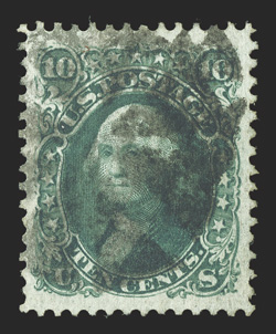 amid lavishly large margins, gorgeous prooflike color and impression o#106, 10c Green re-issue, a magnificent quality mint example of this rare re-issue, possessing exceptional overall physical qualities, including being incredibly well centered amid lavishly large margins, gorgeous prooflike color and impression on especially bright white paper, full o.g. that has been relatively lightly hinged, an extremely fine gem in every regard; without question this stamp is among the very finest available of the 451 sold; 1964 and 2009 PF certificates; ex-Kantor. (Image) $3,750.00