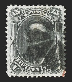 230 Ou 98 98, 15c Black, F grill, premium used single, exceedingly well centered and margined, strong color, neat circle of wedges cancel as well as a bit of a red transit pmk. at bottom