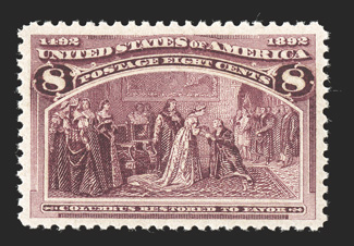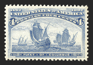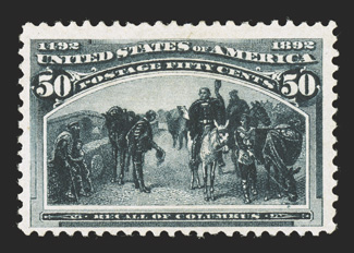 Five Dollar Columbians are among the most challenging stamps in U.S. philately to locate truly never hinged, with only a minuscule percentage of the known mint examples in a true "post office" fresh state. (Image)