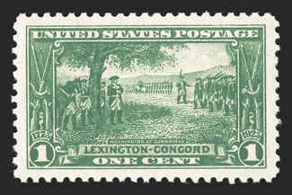 487 nhu 617-19 617-19, 1c-5c Lexington-Concord cplt., each stamp is extraordinarily well centered and margined, vibrant colors, o.g., n.h., extremely fine a handsome and well matched set each