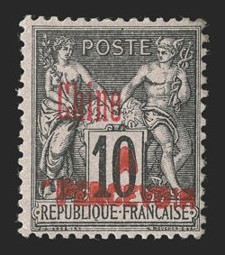 14 og Yvert #64A ImageYvert #64A, 1904 "CHINE" Bilingual overprint on 4c Claret on bluish, fresh and well centered, o.g., l.h., very fine and scarce; only 300 stamps were overprinted; signed A. Brun, Calves and Miro (Scott #47A; $975.00). (Image) €1,000
