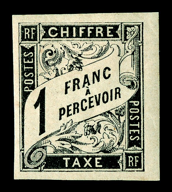 184 og Yvert #TT1-17 ImageYvert #TT1-17, 1884 1c-5Fr. Black and 1Fr.-5Fr. Brown postage dues cplt., generally fresh, ample to mostly large margins, o.g., h.r. or l.h., very fine set; 1Fr. and 2Fr. signed Lemarie (Scott #J1-14, J12a-14a; $1,332.00). (imagea) (imageb) (Image) €1,577