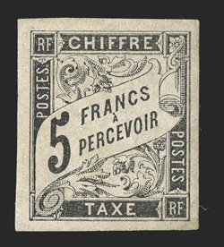 185 nh Yvert #TT14 ImageYvert #TT14, 1884 5Fr. Black postage due, seldom seen post office fresh mint example, four large margins, pristine o.g., n.h., extremely fine (Scott #J14a; $425.00 for hinged). (Image) for hinged €500