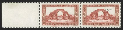 188 nh Yvert #84c ImageYvert #84c, 1927 10Fr. Brown and red, short tree variety, bottom right corner margin vertical pair, the top stamp being the variety, bright colors, o.g., n.h., fine; signed Roumet (Scott #66 var.). (Image) for hinged €855+