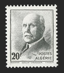 198 nh Yvert #196D ImageYvert #196D, 1942 20Fr. Gray black, unissued value, well centered, exceptionally fresh, o.g., n.h., very fine (Scott #137 footnote; $600.00). (Image) €525