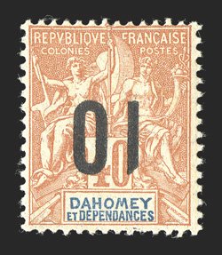 316 og Yvert #37a, 39a ImageYvert #37a, 39a, 1912 "05" Surcharge on 25c Blue and "10" surcharge on 40c Red on straw, inverted surcharges, o.g., l.h., fresh and fine (Scott #36a, 38a; $520.00). (Image) €610