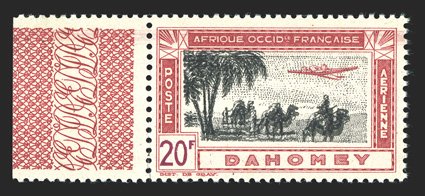 319 nh Yvert #PA15a, 16a ImageYvert #PA15a, PA16a, 1942 10Fr. Ultramarine, indigo and orange and 20Fr. Rose carmine, magenta and grey black, double impression of center, left sheet-margin singles, o.g., n.h., fresh and very fine (Scott #C11-12 vars.). (Image) Maury €1,500
