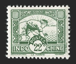 37 og Yvert #103b ImageYvert #103b, 1937 "KOUANG-TCHEOU" Overprint on 2c Dark green, inverted surcharge, the left stamp in a horizontal pair with vertical gutter, the right stamp with surcharge omitted, o.g., h.r., a couple reinforced perforation separations at upper right, very fine and rare (Scott #105a var.). (Image) €440