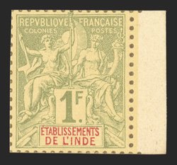 452 og Yvert #21 ImageYvert #21, 1903 "0,10" Surcharge on 25c Black on rose, fresh right gutter-margin single, o.g., very fine; signed Roumet (Scott #21; $350.00). (Image) €400
