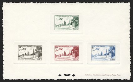 507 P Yvert #PA89-92P ImageYvert #PA89-92P, 1952 6Fr.+5Fr. to 11Fr.+30Fr. Air post, collective deluxe proof, an immaculate example of this key deluxe proof, brilliantly fresh, extremely fine and choice. (Image) €1,300
