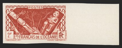511 nh Yvert #84a-114a ImageYvert #84a-114a, 1939-49 1c-2Fr. Pictorials imperforate, nearly complete set of 20 of the 21 values, lacking only the 2.25Fr., all fresh right sheet-margin singles, o.g., n.h., 15c with a light tone spot, very fine; only 75 sets were issued (Scott #80/110 var.). (Image) Maury €2,255