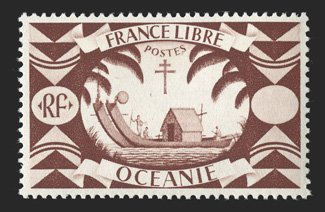 512 og Yvert #144a ImageYvert #144a, 1941 "FRANCE LIBRE" overprint on 1Fr. Red brown, inverted overprint, top sheet-margin single, usual slightly disturbed o.g., very fine (Scott #126 var.). (Image) €1,400
