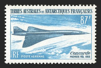516 nh Yvert #PA19a ImageYvert #PA19a, 1969 87Fr. Concorde, the rare and sought-after unissued value, o.g., n.h., extremely fine; only a single pane of 50 was released (Scott #C18 Footnote; $6,000.00). (Image) €7,000