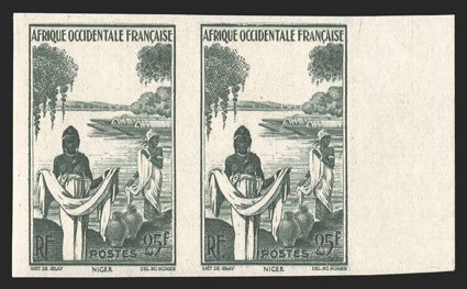 522 nh Yvert #24-42 var. ImageYvert #24-42, 1947 10c-25Fr. Pictorials, imperforate cplt., sheet-margin horizontal or vertical pairs, o.g., n.h., a few with slightly disturbed gum from interleaving, extremely fine (Scott #36-54 var.). (Image) Maury €1,700