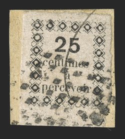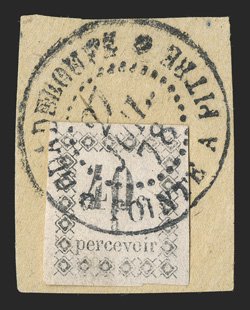 593 p Yvert #TT1 ImageYvert #TT1, 1876 25c Black, select used example, large margins all around, tied to small piece by grid cancel, very fine; signed Gilbert (Scott #J1; $925.00). (Image) €1,100