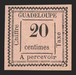 598 ng Yvert #TT9a ImageYvert #TT9a, 1884 20c Black on rose, italic "2" in "20", unused, large even margins all around, strong color on fresh paper, very fine; signed Calves (Scott #J9a; $1,000.00). (Image) €1,100