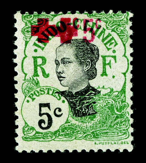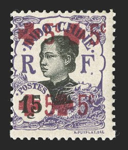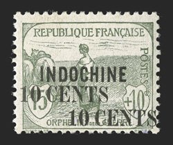 640 ng Yvert #92a ImageYvert #92a, 1919 "24 CENTS" Surcharge on 35c+25c Orphans, double "INDOCHINE", unused, very fine and scarce; signed Roumet (Scott #B10b; $875.00). (Image) €1,100
