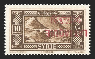 687 nh Yvert #15a ImageYvert #15a, 1931 10pi Brown, inverted overprint, well centered, strong rich color, o.g., n.h., very fine; only one sheet was printed (Scott #18a; for hinged $650.00). (Image) for hinged €750