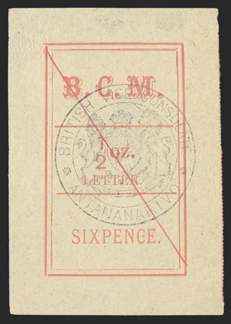 707 og S.G. #1a ImageS.G. #1a, 1884 6p Magenta, violet seal handstamp, exceptionally fresh mint example of this rare stamp, o.g., two small thin spots as usual (every example of this stamp we have handled has had thins to some degree), very fine; 1971 RPS certificate (Scott #13; $2,400.00). (Image) £2,250