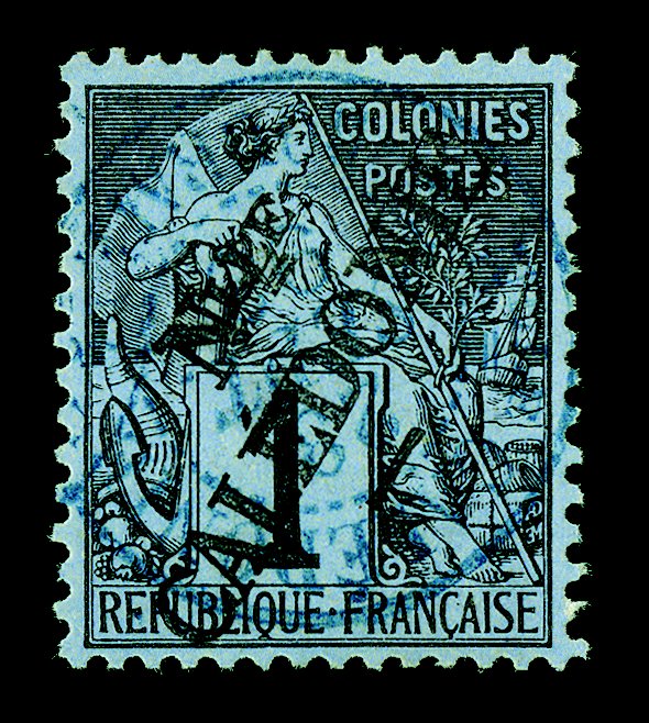 874 O Yvert #83b ImageYvert #83b, 1903 "4" Ty. III Surcharge on 5c Jubilee issue, seldom seen used example, nicely centered and very fresh, neat c.d.s. cancel confined to the bottom right corner, very fine and choice; signed Calves and Pichard (Scott #83 var.). (Image) €800