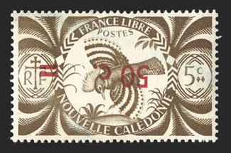 879 nh Yvert #249a ImageYvert #249a, 1946 "50c" Surcharge on 5c Brown, inverted surcharge, pristine o.g., n.h., extremely fine (Scott #266 var.). (Image) Maury €600