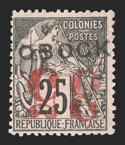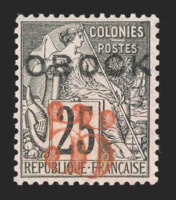 946 og Yvert #26c ImageYvert #26c, 1892 "5" Surcharge on 25c Black on rose, double surcharge, quite fresh, o.g., l.h., very fine; signed A. Brun twice (Scott #26 var.). (Image) €825