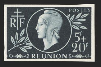 1002 nh Yvert #251a ImageYvert #251a, 1944 5Fr.+20Fr. Red Cross, imperforate, generous margins, o.g., n.h., very fine and scarce (Scott #B15 var.). (Image) Maury €925