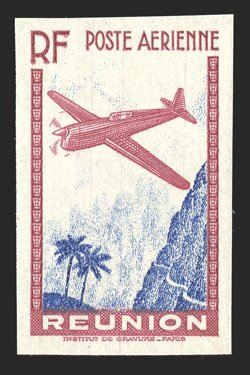 1008 nh Yvert #PA4e ImageYvert #PA4e, 1938 9.65Fr. Carmine and ultramarine, omitted value, imperforate, large even margins, pristine o.g., n.h., extremely fine (Scott #C4 var.). (Image) Maury €525