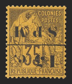 1019 og Yvert #13a ImageYvert #13a, 1891 "15c./S P M" surcharge on 35c Violet on orange, inverted surcharge, well centered, rich fresh color, o.g., h.r., very fine (Scott #16a; $825.00). (Image) €1,000