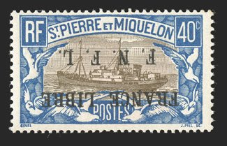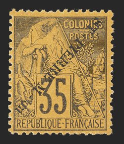 1021 og Yvert #27A ImageYvert #27A, 1891 "ST-PIERRE M - on" overprint on 35c Violet on orange. inverted overprint, exceptionally fresh mint single, nicely centered, o.g., l.h., very fine and quite scarce (Scott #32 var.). (Image) €800