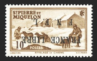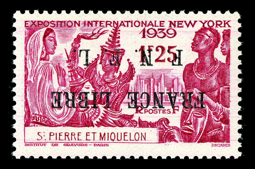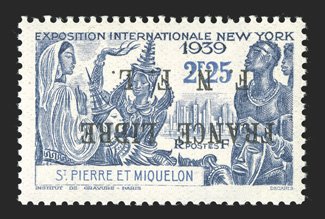 1040 nh Yvert #281A-82A ImageYvert #281A-282A, 1942 "FRANCE LIBRE/F.N.F.L." overprint on 1.25Fr. and 2.25Fr New York World's Fair, inverted overprints, both fresh and well centered, o.g., n.h., extremely fine and rare; each signed Calves and Rendon (Scott #256-57 var.). (imagea) (Image) for hinged €4,400