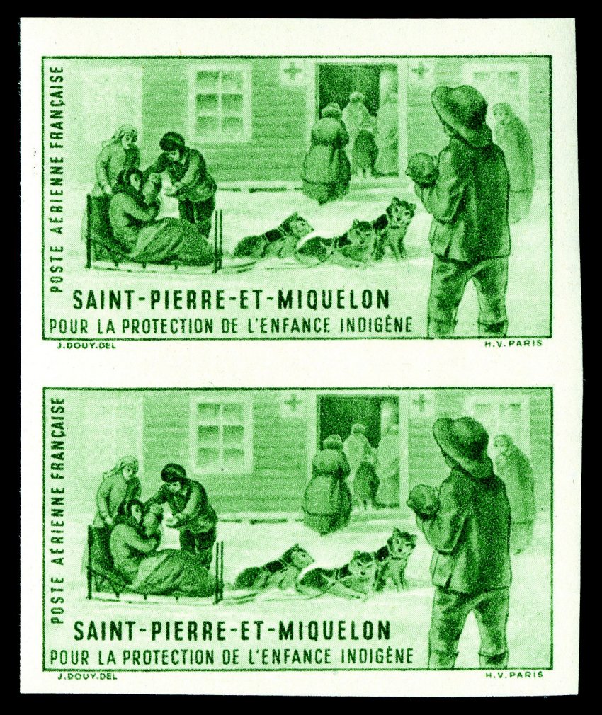 1041 nh Yvert #PA1-2a ImageYvert #PA1-2a, 1942 1.50FR.+3.50Fr. and 2Fr.+6Fr. Native Children's Welfare Fund, imperforate and with value omitted, vertical pairs, both with large even margins all around, pristine o.g., n.h., extremely fine. (imagea) (Image) for hinged €800