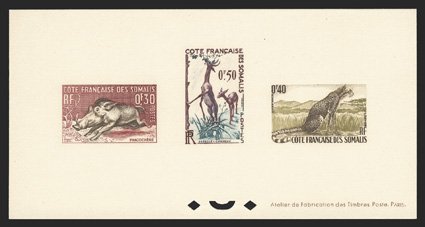 1104 P Maury #BS1/8AP ImageMaury #BS1P, BS3AP, BS4P, BS8AP, 1958-62 Collective proofs of special souvenir sheets, seven different comprised of 1958 Nature Preservation, 1959 Fish (3), 1960 Birds and 1962 Flora and Fauna (2), extremely fine and scarce (Scott #271-73, 275-82, 283-86, 287-92 var.). (Image) Est. $500-750