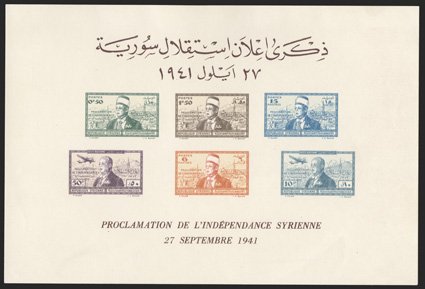 1120 og Yvert #BF2 ImageYvert #BF2, 1942 50c-10pi Independence, imperforate souvenir sheet of six, without gum as issued, bright and fresh, very fine. (Image) €700