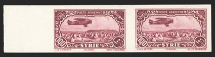 1131 nh Yvert #PA50-59 var. ImageYvert #PA50-59 var., 1931-33 50c-100pi Air posts, imperforate cplt. in either right or left sheet-margin horizontal pairs, large margins, brilliant colors, o.g., n.h., 5pi with tiny adherence on gum and small thin in the margin only, otherwise extremely fine; only 200 imperforate (100 pairs) of each were printed (Scott #C46-56 var.; for hinged $850.00+). (Image) for hinged €1,300+