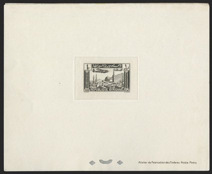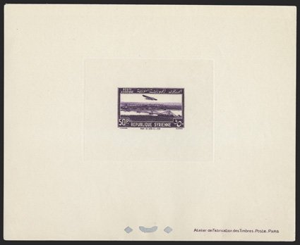 1133 P Yvert #PA78-85P ImageYvert #PA78-85P, 1937 ½pi-25pi Air post deluxe proofs cplt., all with glassine interleaving still attached, a couple values with a tiny tear, otherwise very fine (Scott #C80-87P). (Image) €4,000