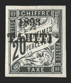1173 og Yvert #TT21 ImageYvert #TT21, 1893 "1893/TAHITI" overprint on 20c Black, large even margins all around, o.g., h.r., extremely fine; only 200 stamps were issued; signed Thier (Scott #J21; $550.00). (Image) €650